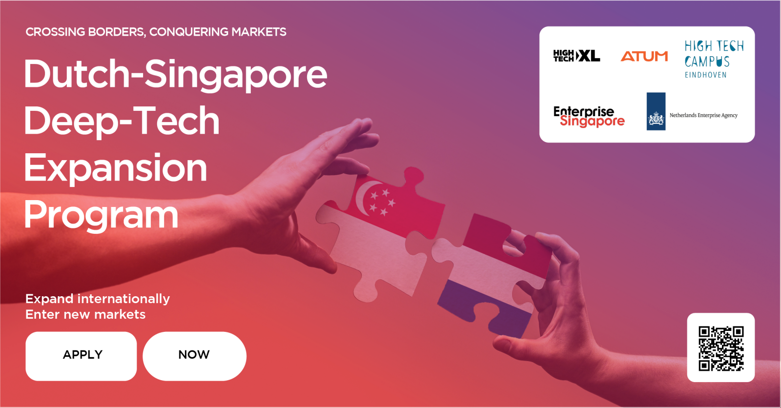 Join our online info session on October 15th from 12:00 pm to 1:00 pm CET to learn how the Dutch-Singapore Deep-Tech Expansion Program, In collaboration with HighTechXL and ATUM Ventures, can empower your expansion into Singapore’s thriving innovation ecosystem.